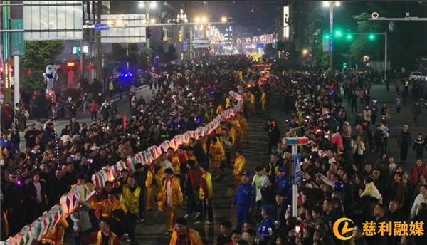晚上8时,板板龙灯从县人民广场“腾飞”而出,22支舞龙队紧随其后,来到街道进行游园祈福活动。从起点到终点共4400米,历时2个小时,整个街道人山人海,在群众的簇拥中,龙灯缓缓行进,呐喊声、欢笑声……直冲云霄,慈利人民都沉浸在欢乐之中,感受非遗的魅力,一睹“巨龙”的风采。